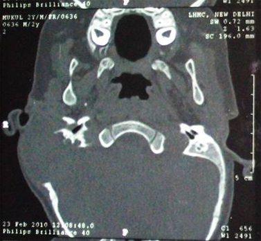 Langerhans’ cell histiocytosis (LCH) refers to a group of diseases whose primary pathogenesis is an abnormal polyclonal proliferation of Langerhans cells. [1] Langerhans cells, which are macrophages that are normally present only in the dermis, are the characteristics of this disease. [2] This disease is divided in three subtypes: eosinophilic granuloma (EG), Hand—Schuller—Christian disease (HSC), and Letterer—Siwe (LS) disease. [3] The incidence of LCH is approximately 5.4 per million. It is a rare disease with a male predominance. It mainly affects children of age between 1 to 4 years. [1,4] The clinical presentation of LCH depends upon the site of involvement. It can range from a multifocal to a solitary lesion. It usually affects the head and neck, mainly the skull base, in 60% of cases. [3,4] The temporal bone is involved in 19—25% of cases and the involvement is bilateral in a third of all cases. [2,5] The petrous ridge of the temporal bone is the most commonly affected area. [5] This disease has an unpredictable natural history varying from a rapidly, fatal progressive disease to spontaneous resolution. [1]