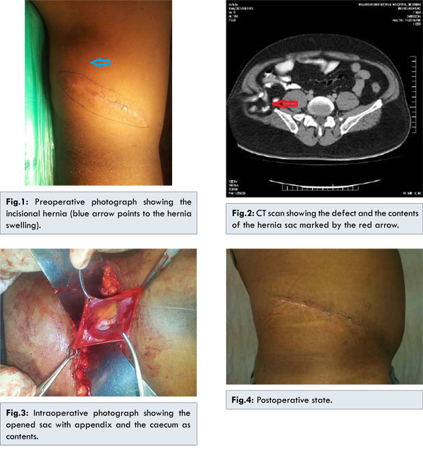 Background: Lumbar incisional hernia following iliac bone grafting poses an anatomical challenge to the attending surgeon. Alteration of the local anatomy necessitates meticulous preoperative evaluation and proper planning of the repair. Introduction: The incidence of such incisional hernias is between 5-7%. The chances of complications are high. Case Report: A case of lumbar incisional hernia following iliac bone graft harvesting is presented. Discussion: The planning and technical considerations of surgical repair are discussed. Conclusion: Pre-operative CT scan evaluation of the hernia followed by open mesh repair is advisable as it ensures safety and offers good results. |